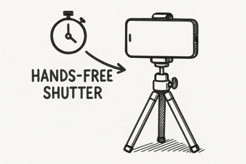 A stable camera angle is essential, so a simple tripod arrangement is the easiest way. If you don’t have a tripod, a steady surface such as a shelf or a stack of books will work — just make sure the camera stays centered and doesn’t tilt. Use the self-timer or a remote shutter so that your hands are not in the frame and the camera is still complete during the shot.