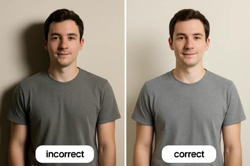 Achieving the pose is easier than many people think. You don’t need to be stiff or tense, just controlled and consistent. With your head centered, your posture relaxed, and your expression neutral, you’re 90% of the way there to a compliant DIY passport photo. What follows are straightforward tweaks to hair, clothing and accessories that make it easier for the camera to see a clean, full-faced view illuminated by symmetrical lighting.