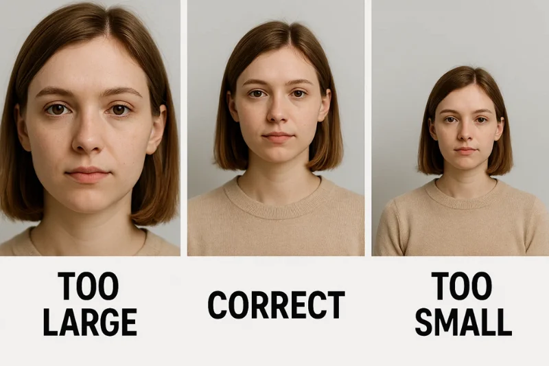 Your face is either so big it fills the screen or too small it has too much empty space around it.This causes the image to not meet the required head size proportions.