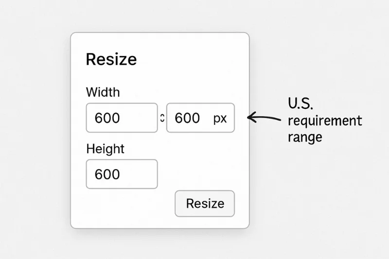 A U.S. digital passport photo has to be in a specific digital format, but the requirements are straightforward. The file should be a square (with an aspect ratio of 1:1) and sized between 600×600 px and 1200×1200 px. You must also save it with a name of at most 8 characters (in JFIF format with extension JPG), ensure that the color profile used is sRGB, and the file size can not be more than 240 KB. These rules are to ensure that the photo is clean when processed by the government’s automated systems.