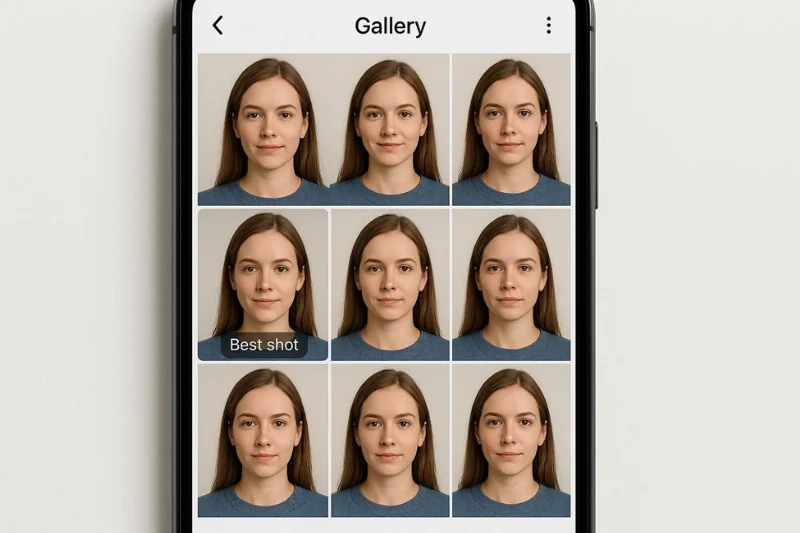 This is the whole process you’ll use to take a digital passport photo at home on your own. It’s straightforward, predictable, and for anyone who wants to do a DIY passport photo without special equipment.Every step is a single clean action — no overthinking, no photography jargon — just a well-defined path from setup to final export