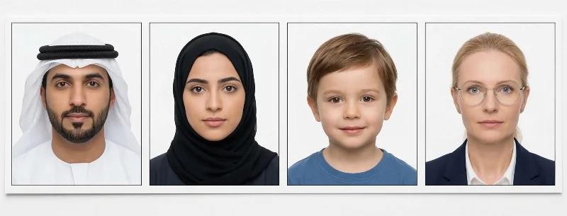Alternatively, you can create your Emirates ID or residency photo online with PhotoGov, using only a smartphone or a laptop — no appointment or in-person visit required.
