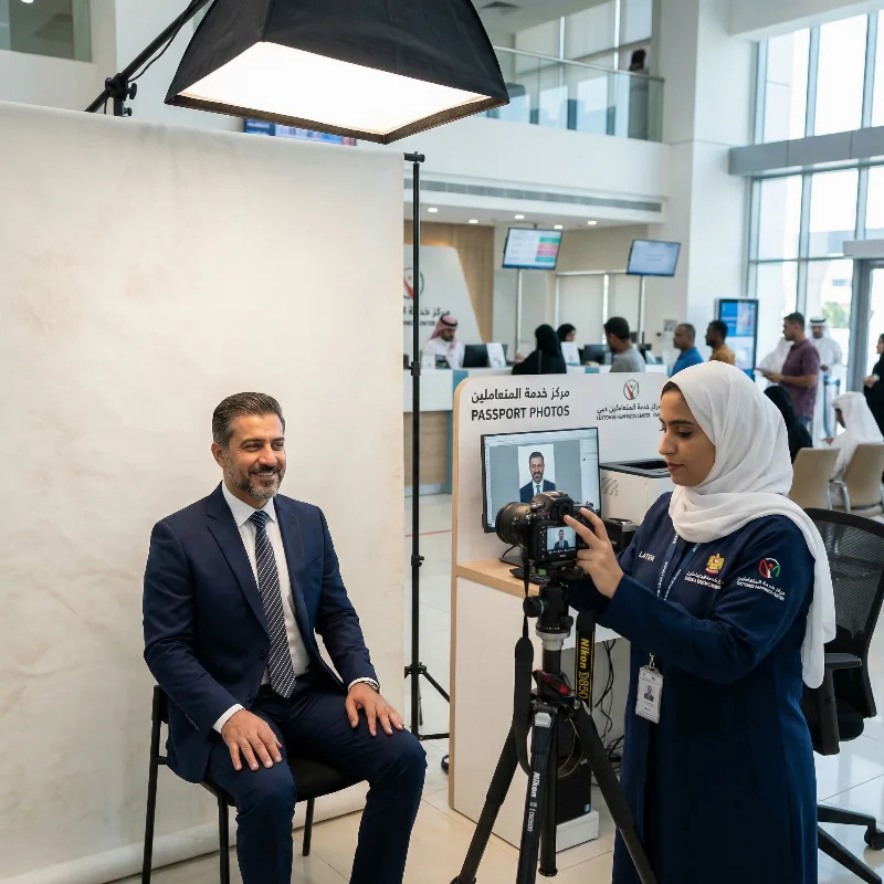 Passport photos in the UAE can be taken at professional photo studios, authorized printing centers, and major retail chains offering ID photo services. Customer Happiness Centers and ICP offices across the Emirates provide on-site photo services for submitting passport or ID applications.