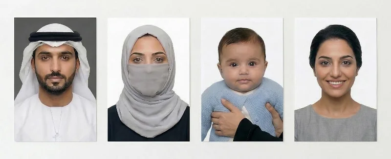 A UAE passport photo is a biometric image that meets a strict set of technical specifications — 40 x 60 mm or 945 x 1417 pixels, plain white background, taken within the last 6 months, and other essential parameters. This 2026 Guide covers all official UAE passport photo requirements to help you avoid delays, repeat submissions, or reappointments.